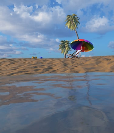 En liten simpel strand där fokuset var att skapa en lugnande stämning samt realistiskt vatten.